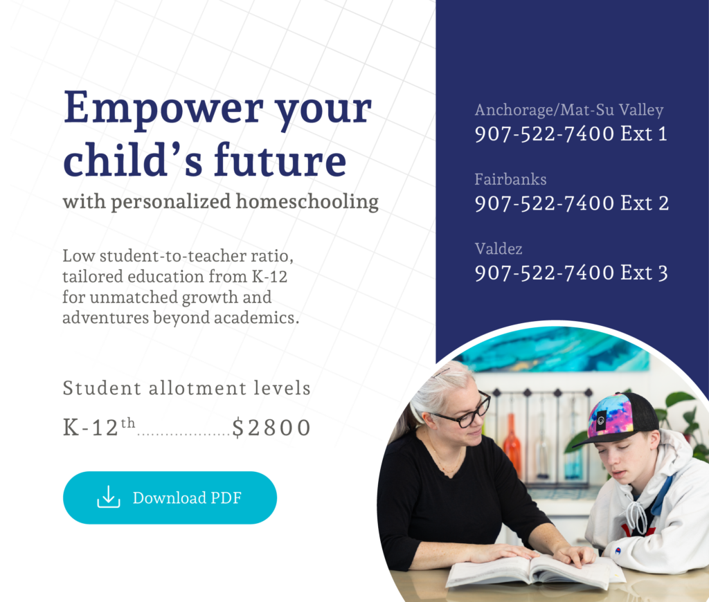 Please ask for our FOCUS Homeschool program 907-522-7400